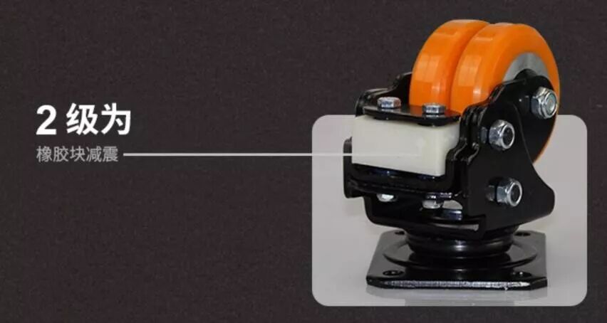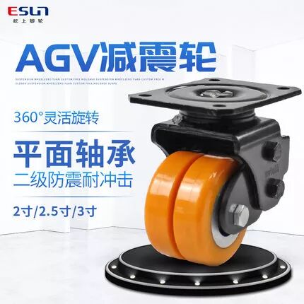 AGV脚轮二级减震:当AGV负重时,受力不均,此时通过胶块减震,确保轮子在一个平面上。