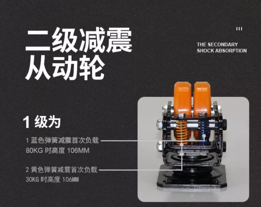 早在3年前,屹上就推出了二级减震万向轮,产品设计原理和宝马汽车的减震原理一模一样,通过在轮子和支架间添加了减震模块以及缓震弹簧,以最大限度的减少震动。今天,屹上即将推出全新升级款减震轮,借此机会,屹上再来和各位工程师大大聊聊从动轮减震的原理。