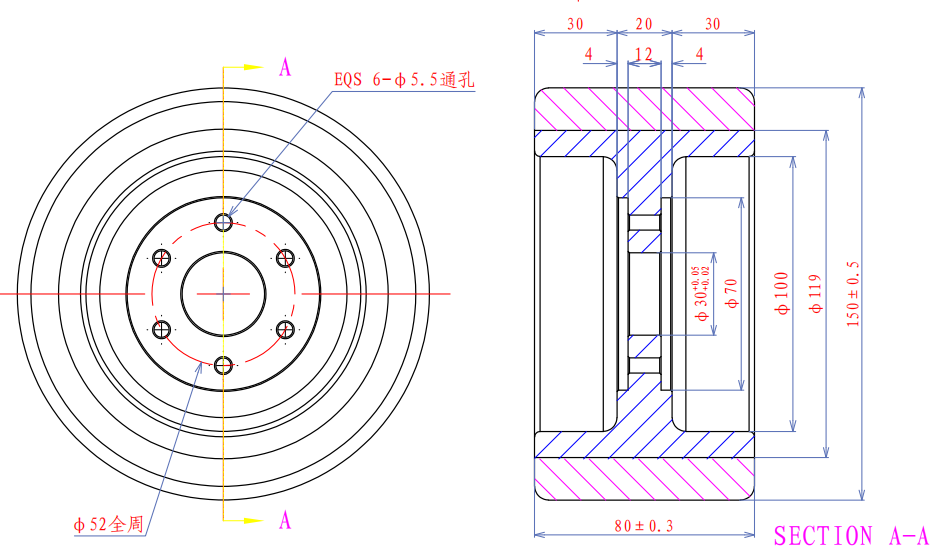 60×30系列-AGV专用橡胶驱动轮-键槽待加工