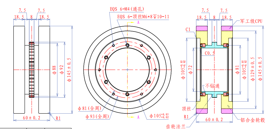 产品货号:AGV145X60ZALCPU110103 75A -定制产品尺寸:145X60mm 载重:200KGS胎面材质:聚氨酯胎面硬度:80 ShoreA ±3