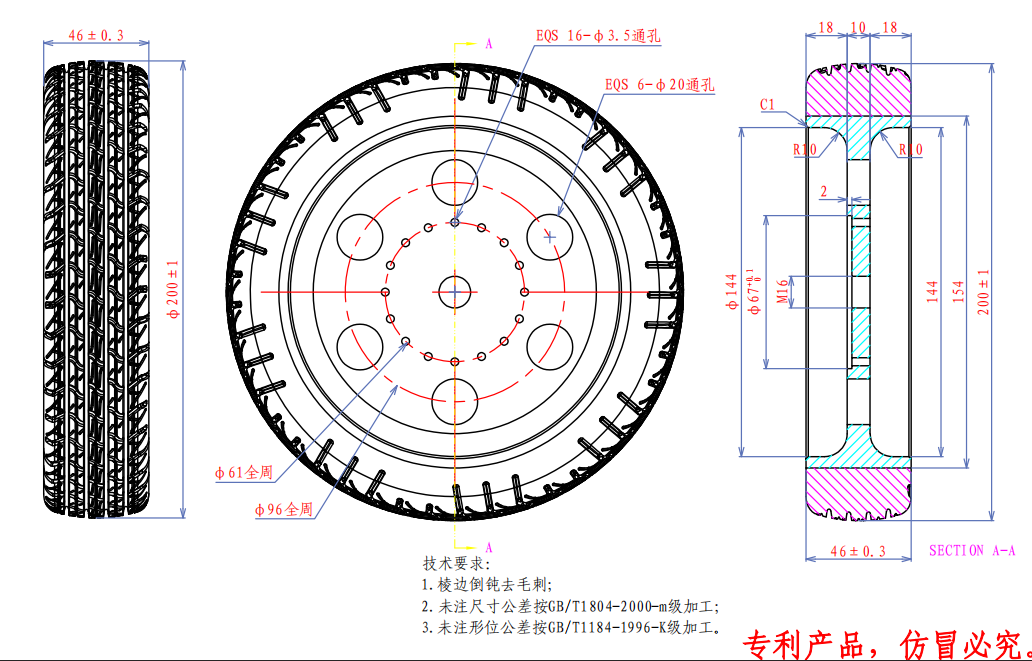 产品货号: AGV200X46ZALNR080103 75A产品尺寸: 200X46mm 载重:200-250KGS胎面材质:天然橡胶(NR)胎面硬度:75 ShoreA ±3