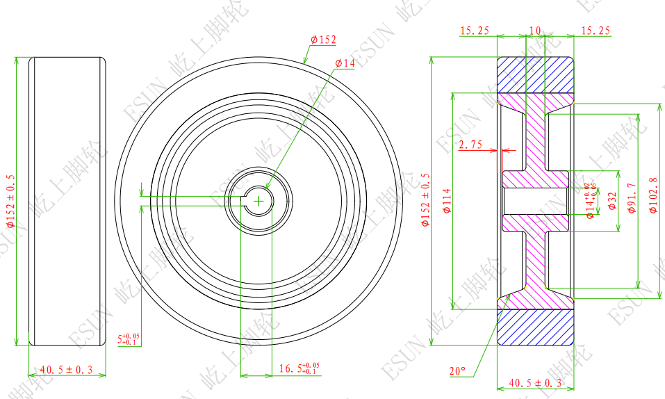产品货号: AGV152X40ZALCPU110104 80A产品尺寸: 152×40mm载重:200kg轮面材质: 聚氨酯轮面硬度:80 ShoreA ±3