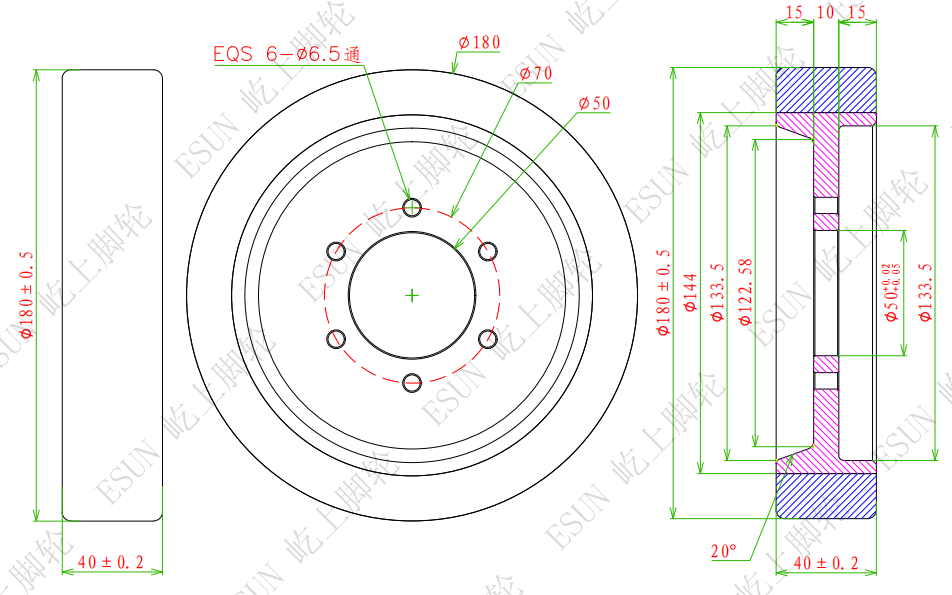 产品货号: AGV180X40ZALCPU110103 80A产品尺寸: 180×40mm载重:400kg轮面材质: 聚氨酯轮面硬度:80 ShoreA ±3