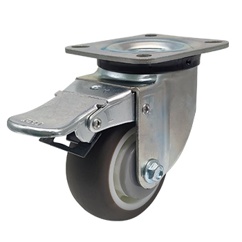 支架采用抗冲击设计制造,钢压制成型,并通过对球轨道进行冷作硬化而达到长使用寿命。表面镀锌处理,蓝色钝化,不含六价铬。轮片采用高强度PP+优质TPR注塑粘合而成,具有高弹力、抗切割、减震、环保、保护地面无轮印的特点。