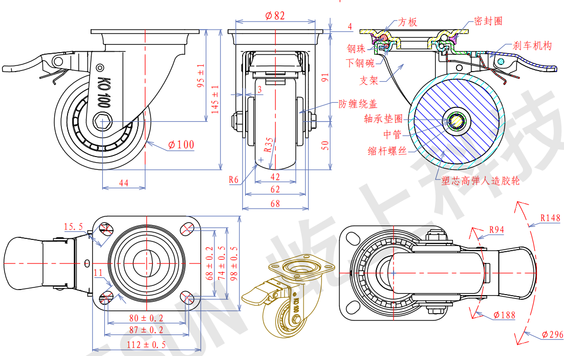JQR4K24-100PPTPR712万向刹车4寸